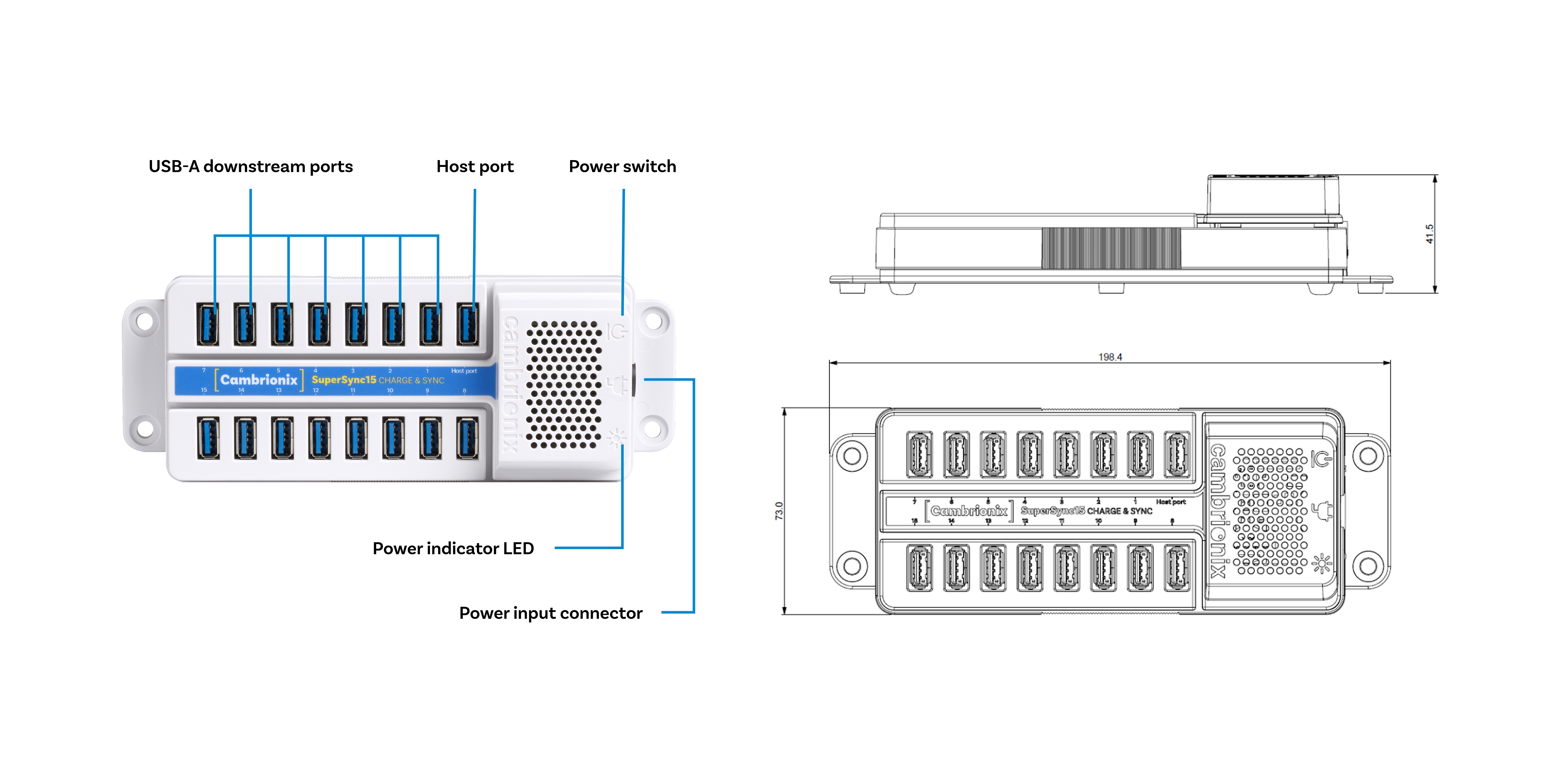 The SuperSync15 features 15 USB-A 2.0 ports for device connection.