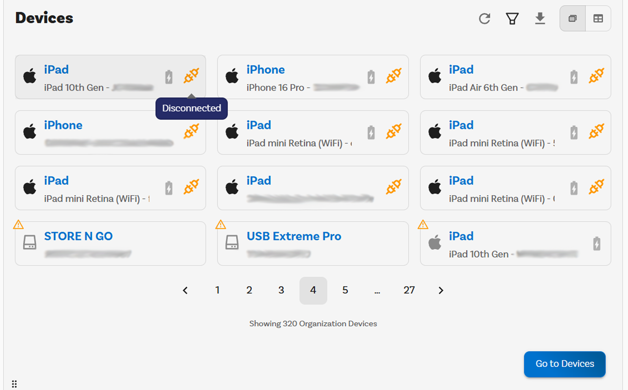 Connect Standard stores the last known status of every device and hub, helping you track usage and identify removals when the host is unreachable or if a device is removed.