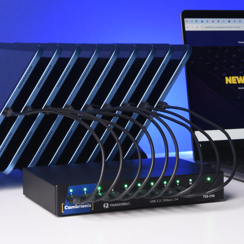 At Cambrionix, we create fast, reliable and intelligent USB solutions to support the industry transition. Due to the innovative way we've used Thunderbolt technology our ThunderSync hubs enable fast and secure data erasure, testing, and refurbishment.